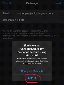 Click “save”. Your United Legwear inbox will populate in your Mail app