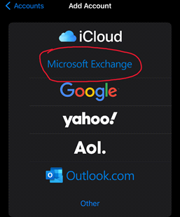 Select “Microsoft Exchange”