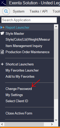 Exenta - Change Password January 30, 2025 19:01 1) Log into Exenta 2) Click the Magnify Glass 3) Click Change Password 4) Set your new password